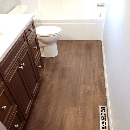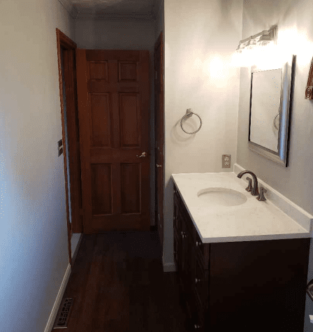 To finish off the project we installed flooring, lighting, a medicine cabinet, and reset the toilet and vanity that were provided by the customer.