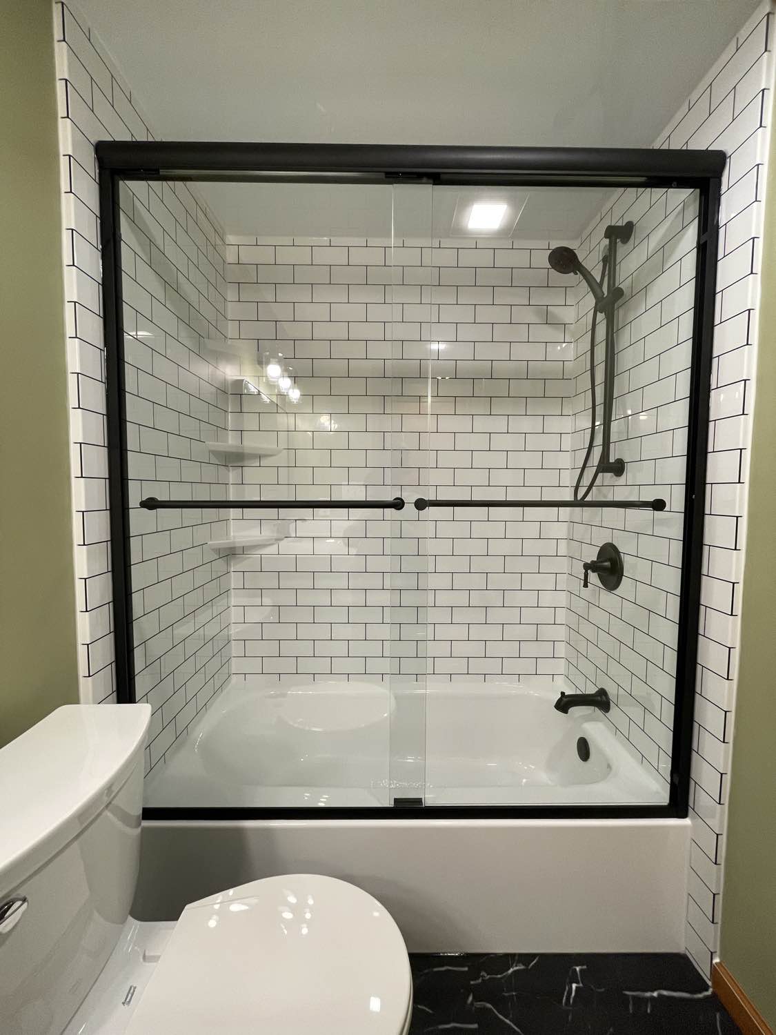 This week’s featured project is all about fresh starts! Our customer wanted to keep the classic tub layout but bring a fresh, modern vibe to their bathroom—and New York Sash was happy to help. We installed a brand new tub in white along with an acrylic wall surround in a Laser-Etched subway tile pattern. We also paired with a new shower door which also features a clear glass and a black frame. This tub not only modernizes the space but makes it feel bigger, brighter, and more inviting!