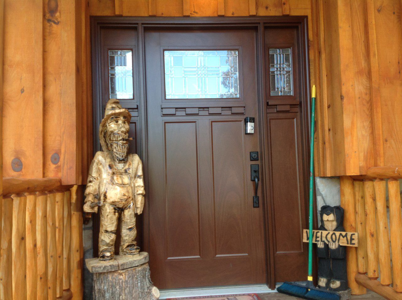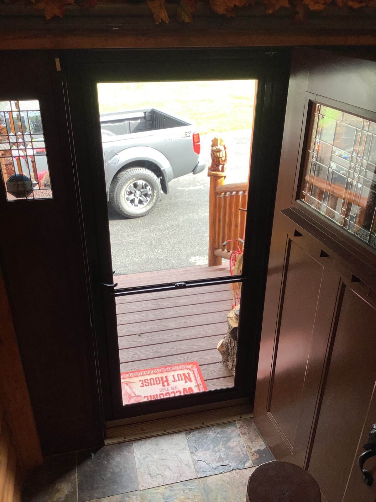 The color of the new storm door perfectly matches the color of the existing entry door.