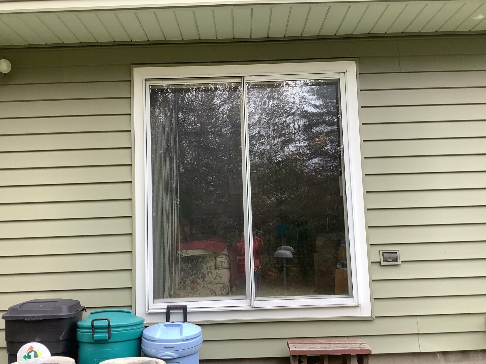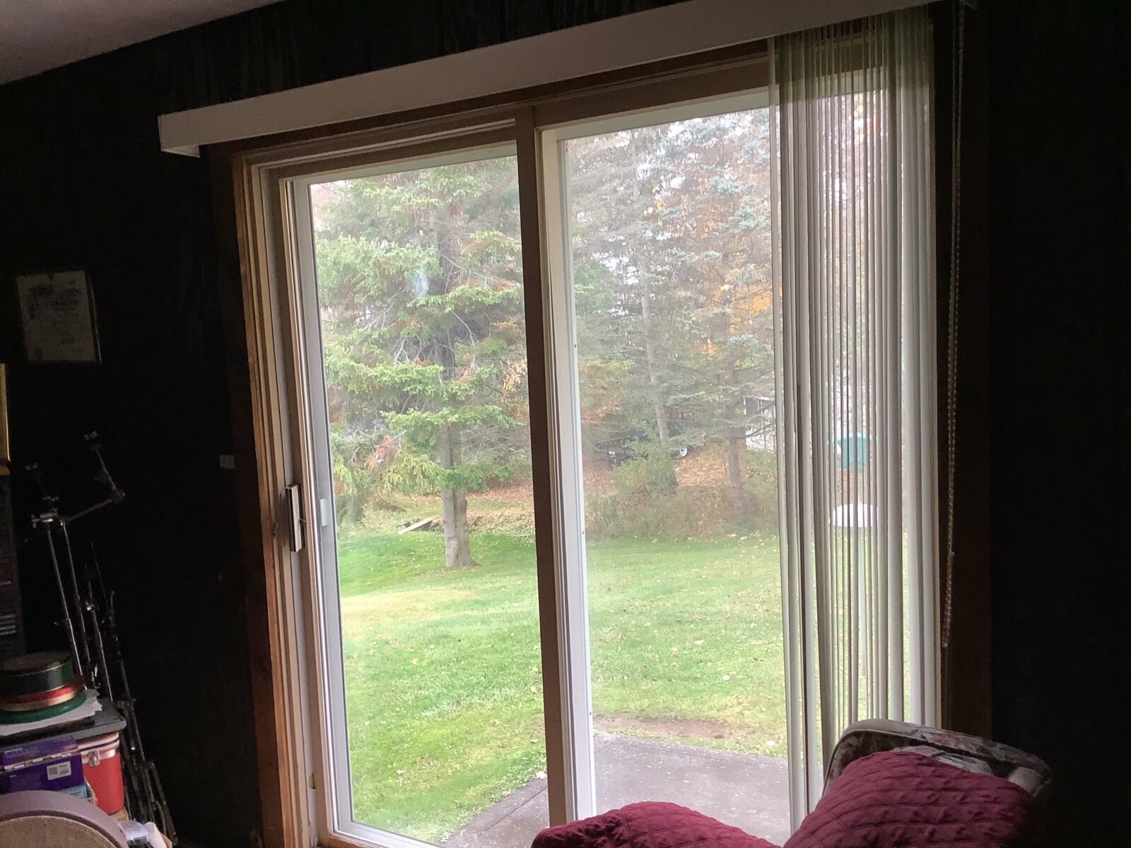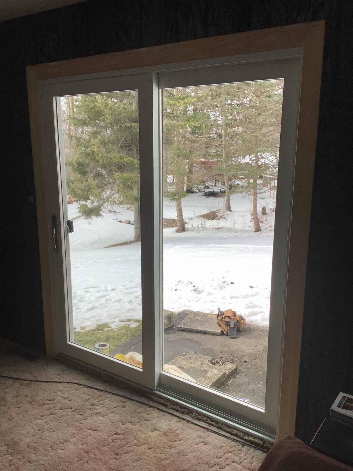 On the back of the home we installed a new sliding glass door finished in white with satin nickel hardware.