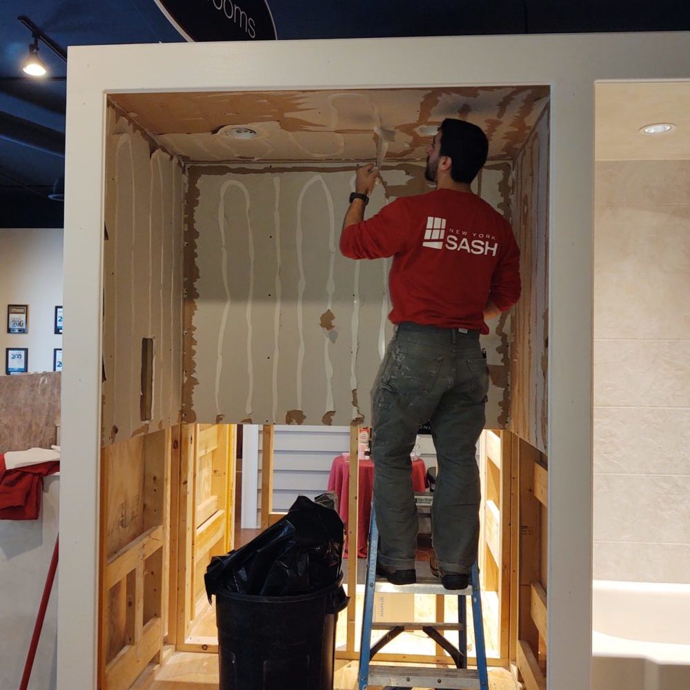 This week’s special featured project is our New York Sash Showroom. New York Sash has partnered with Bath Wraps for new bath remodeling options. As a result, all of our bathroom displays needed a makeover. We upgraded to 13 new bath color options to suit your needs!