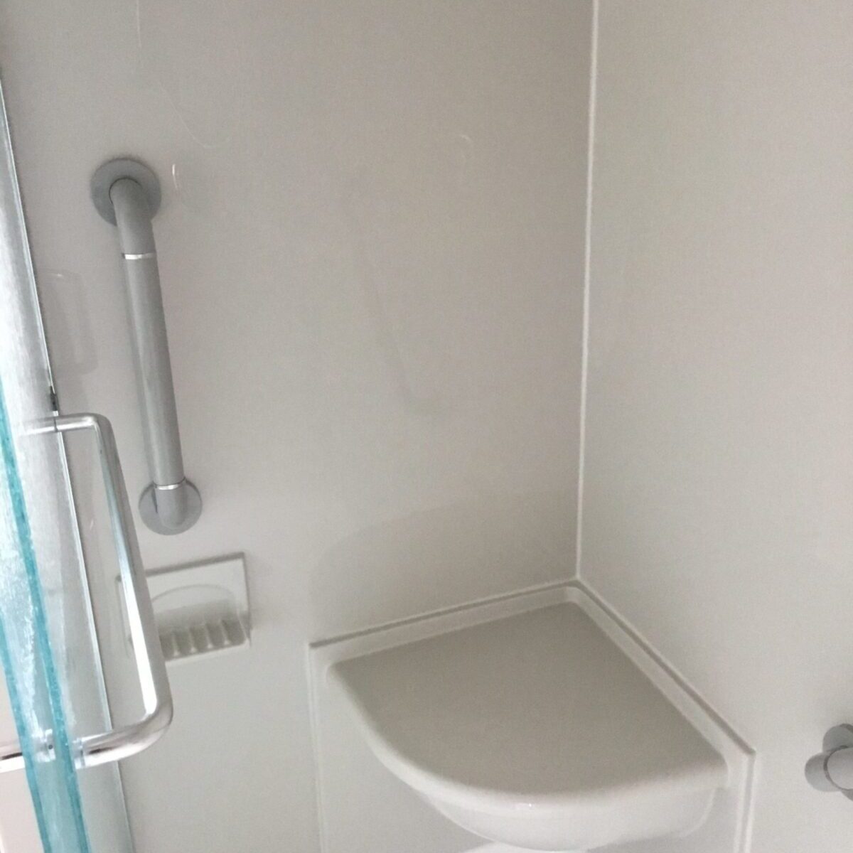 The grab bar placed in that diagonal position will make it easier and safer for Evelyn to get up from her shower safety seat. A grab bar can help reduce bathroom accidents. With all of the finish options available, you can find a perfect match to any bathroom design.