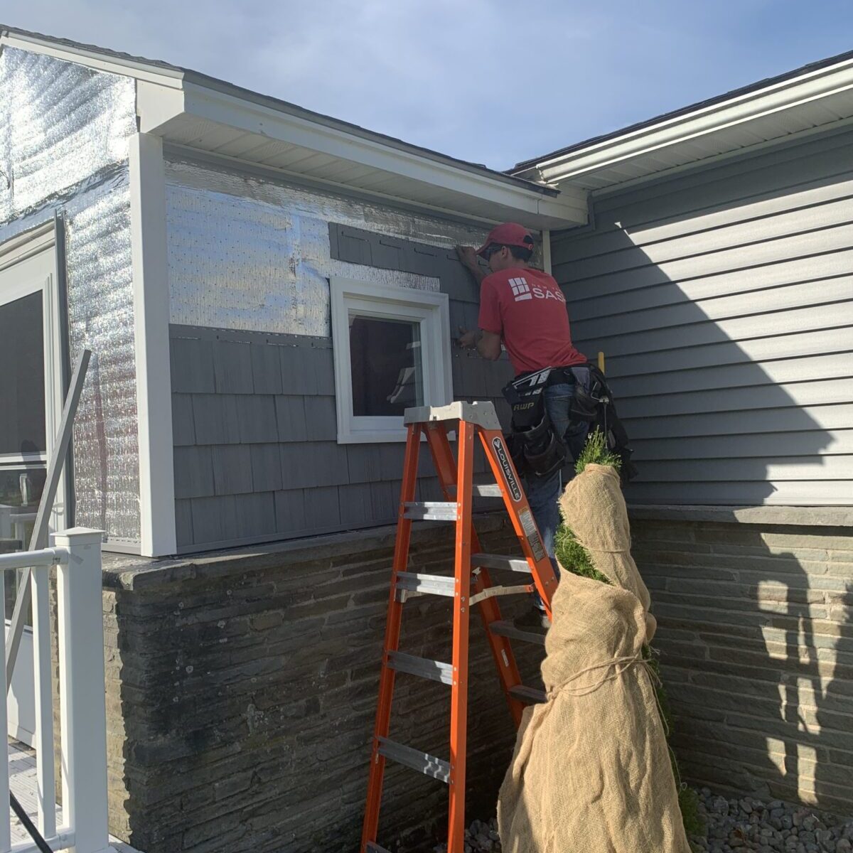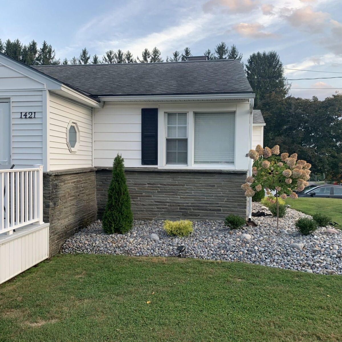 This week, we installed siding and windows for a customer. They wanted to boost the curb appeal on their home and save on energy bills! We sided their home with charcoal grey monogram siding accented with cedar impressions rough split shakes on the porch area. We were able to show our customer the end result before finishing the job with our siding ColorView design program. To save them money on energy bills, we removed their old drafty picture window and replaced it with two mulled together double hung windows. By remodeling the front of their home, they were able to boost their homes curb appeal!