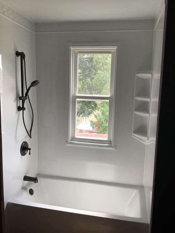 This week we are featuring a bathroom install we recently completed for a new customer in Utica, NY. We installed a white tub with a smooth white wall surround and ceiling panels. A four shelf caddy and oil rubbed bronze fixtures were installed and complete the new shower area. Our customers were looking to update their…