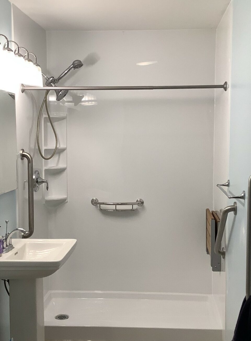 This week we are featuring a walk-in shower we installed for a returning customer in Westmoreland, NY. Our customer decided it was time to update their walk-in shower and we were happy to help make it happen! We installed a white shower base with a patterned white surround and white ceiling panels. A four-shelf caddy,…