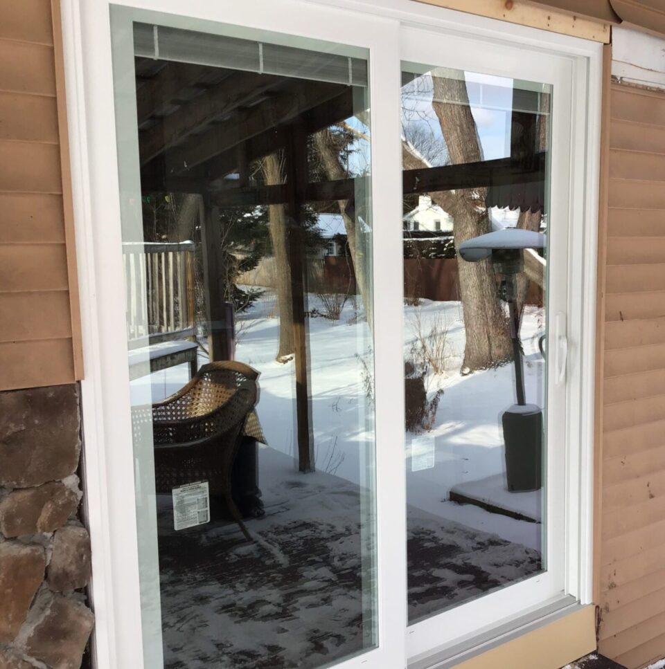 This customer in Utica, NY wanted a new patio door for their dining room. One unique feature of the patio door New York Sash installed is blinds in-between the panes of glass!