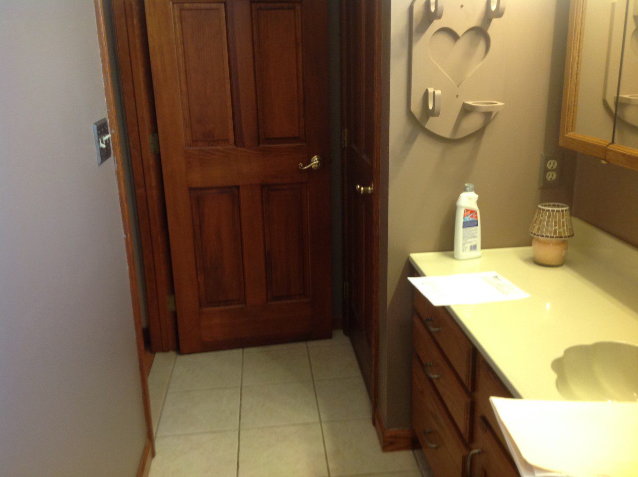 To finish off the project we installed flooring, lighting, a medicine cabinet, and reset the toilet and vanity that were provided by the customer.