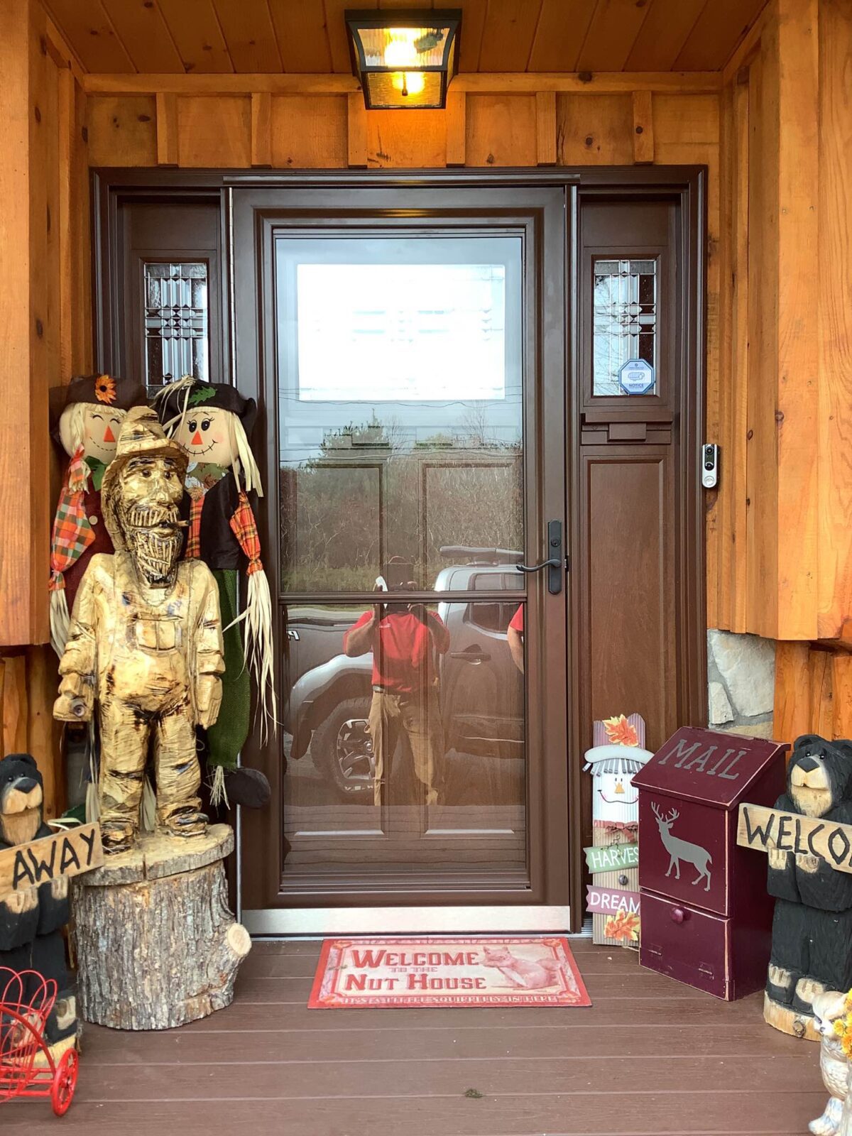 The color of the new storm door perfectly matches the color of the existing entry door.