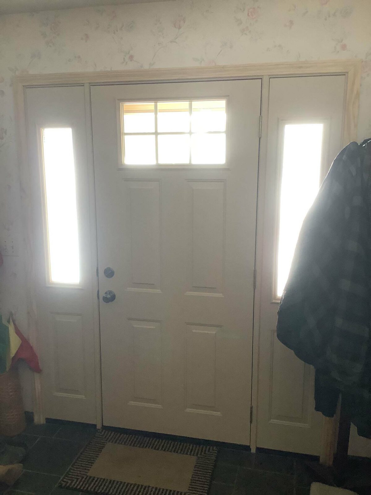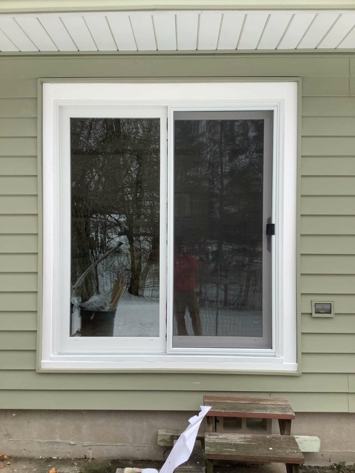 On the back of the home we installed a new sliding glass door finished in white with satin nickel hardware.