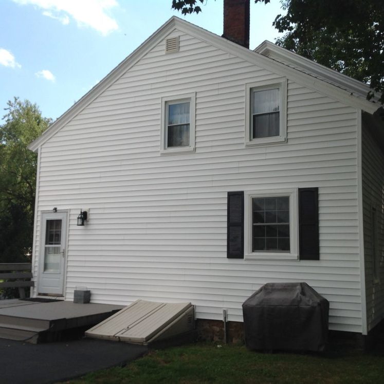 This week we completed a job for customers who chose Wolverine American Legend Siding for their exterior makeover. This popular line comes in a wide rage of colors, either with a wood grain or brushed finish, so you can create the look you desire. The siding uses the PermaColor System that enhances all American Legend products with color performance, impact resistance and durability. They wanted to keep the classic siding look, so they chose the color Colonial White for their colonial home!