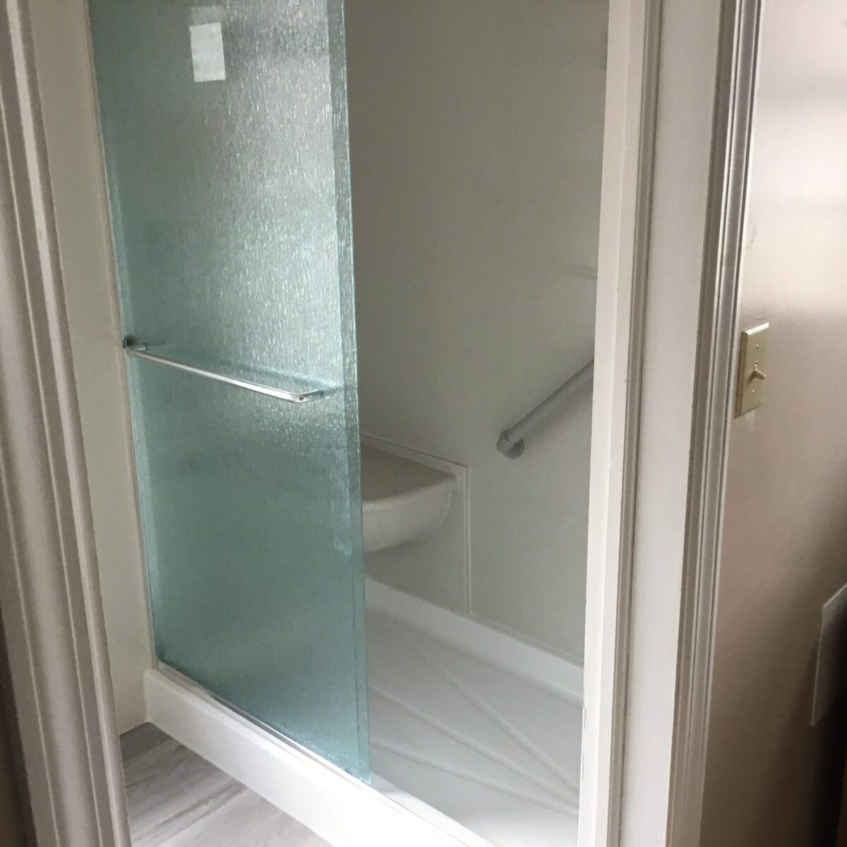 Referred by one of our customers, Evelyn VanNederynen came to New York Sash for a complete Bath Remodel. She needed her her floors, tub, and toilet ripped out for us to start with a blank canvas. Evelyn was having accessibility issues with her old bath, so we helped her decide on a stand up shower with a corner seat & grab bar for easier access.