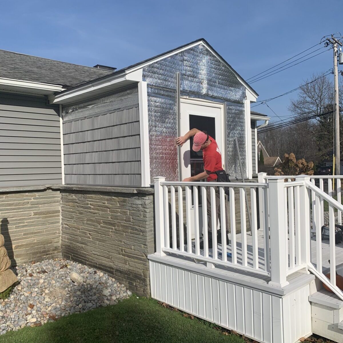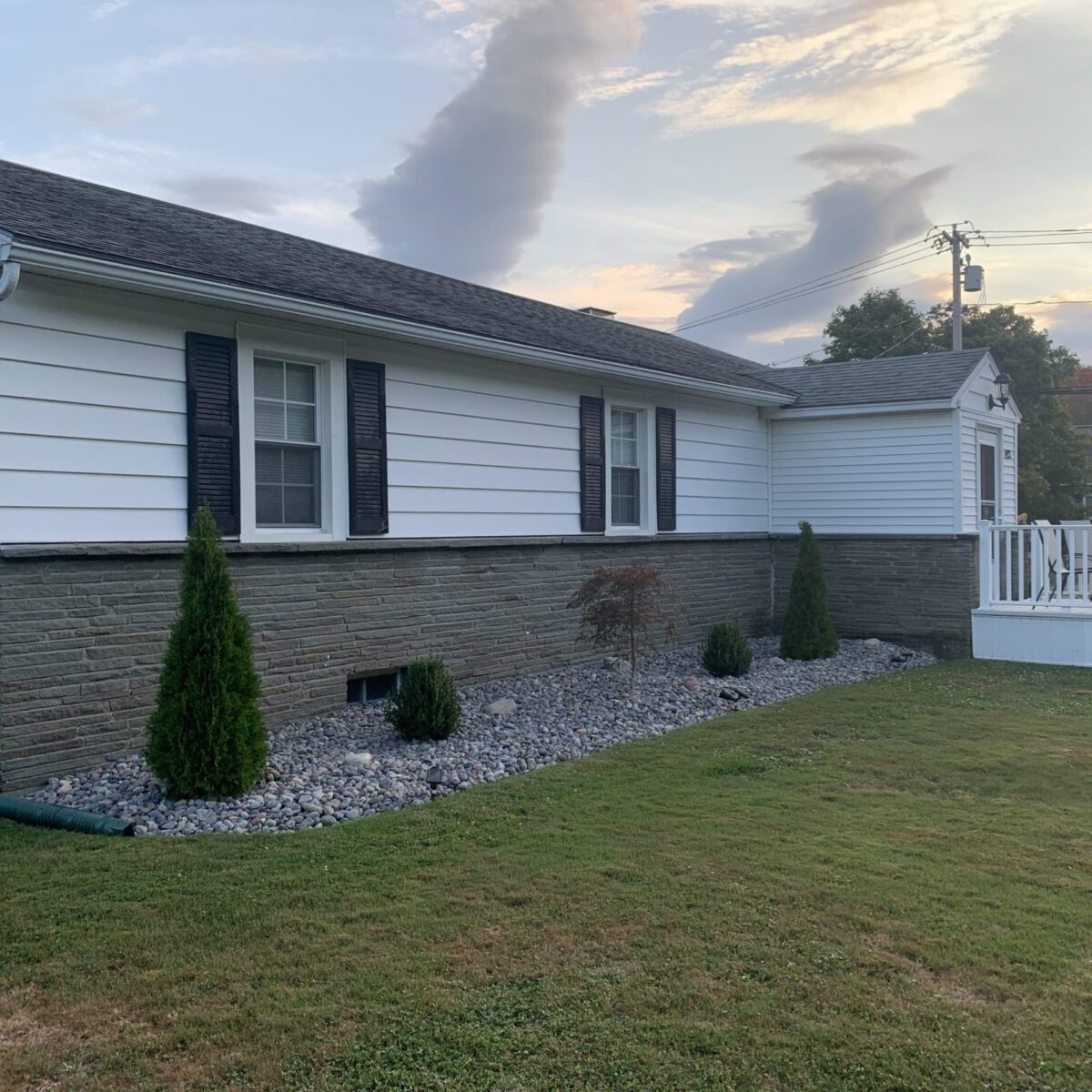 This week, we installed siding and windows for a customer. They wanted to boost the curb appeal on their home and save on energy bills! We sided their home with charcoal grey monogram siding accented with cedar impressions rough split shakes on the porch area. We were able to show our customer the end result before finishing the job with our siding ColorView design program. To save them money on energy bills, we removed their old drafty picture window and replaced it with two mulled together double hung windows. By remodeling the front of their home, they were able to boost their homes curb appeal!