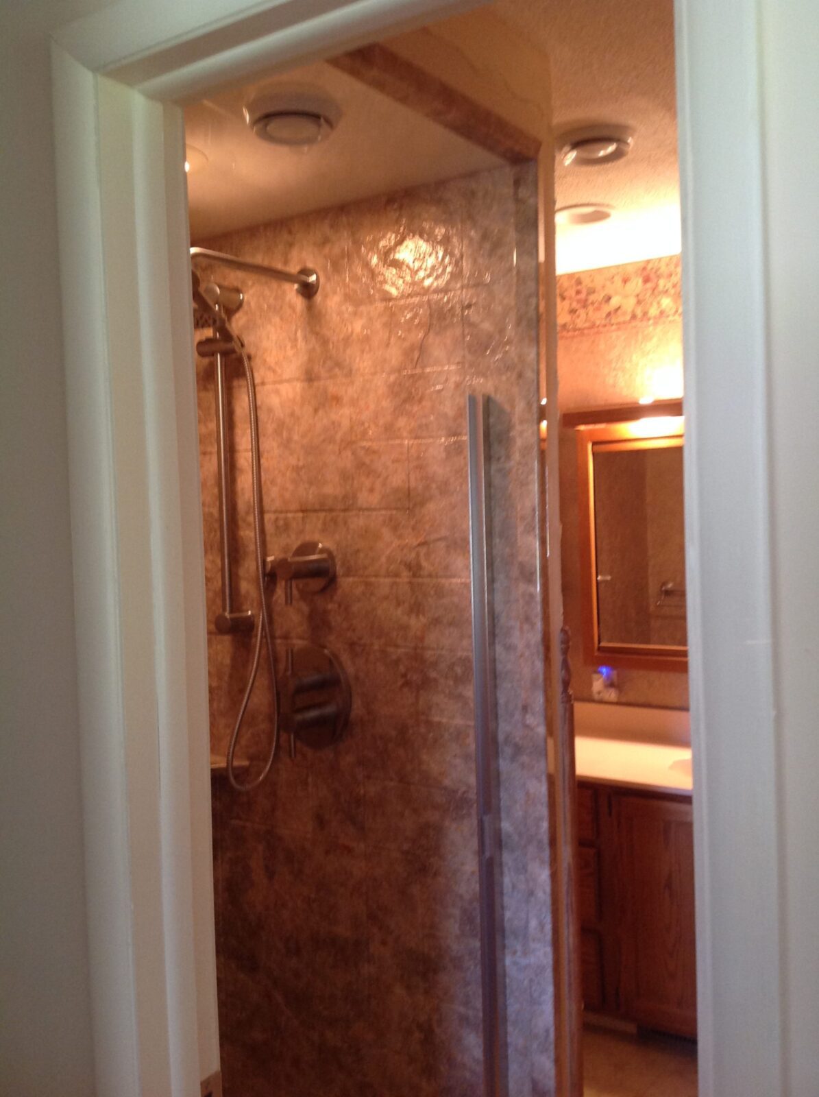 This week our featured project is a brand new shower for one of our customers. They wanted a newer shower, but also wanted to utilize the same space. Their shower walls in copper ridge and accessories in brushed nickel compliment each other perfectly.