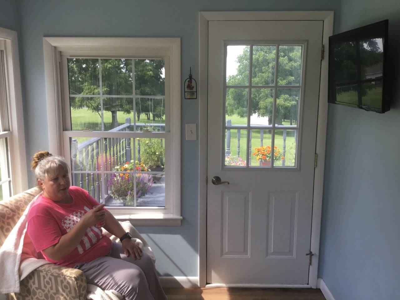 The new door is a beautiful addition to their sunroom!