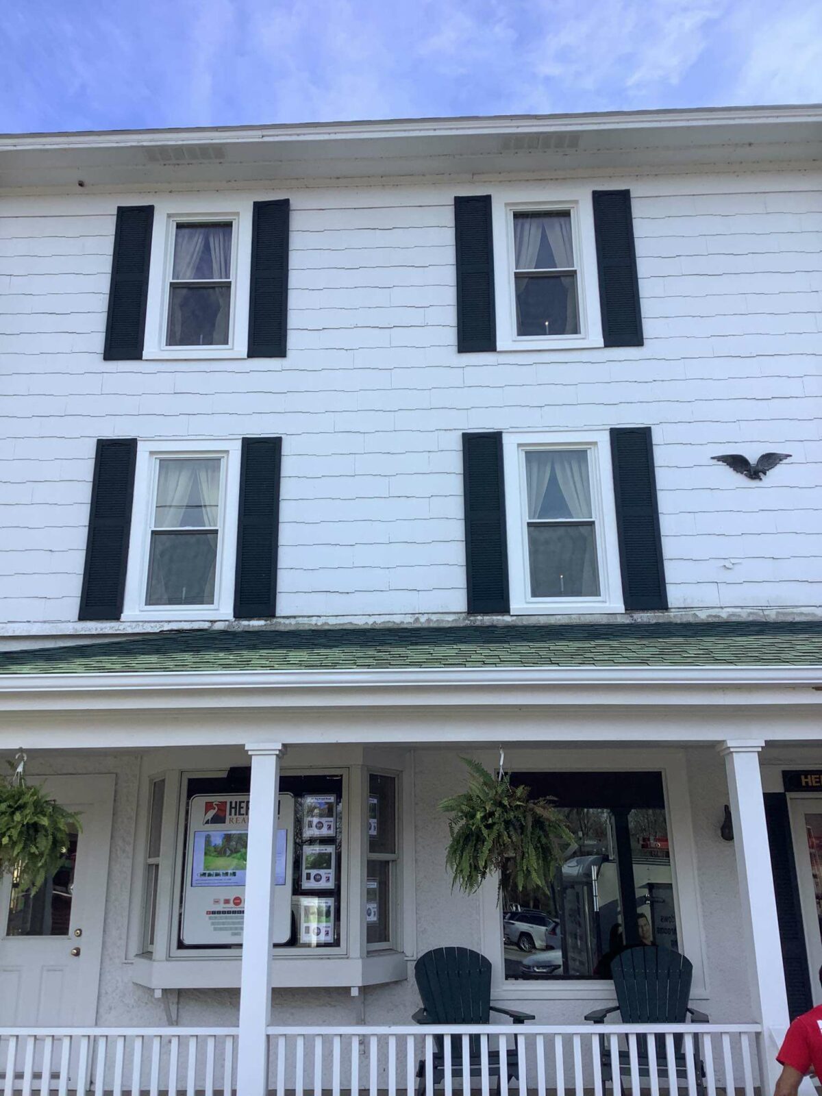 This week we are taking a look at a big window project we completed for Herron Realty in Old Forge, NY. We installed a total of 30 windows consisting of double hung windows and picture windows all finished in white.