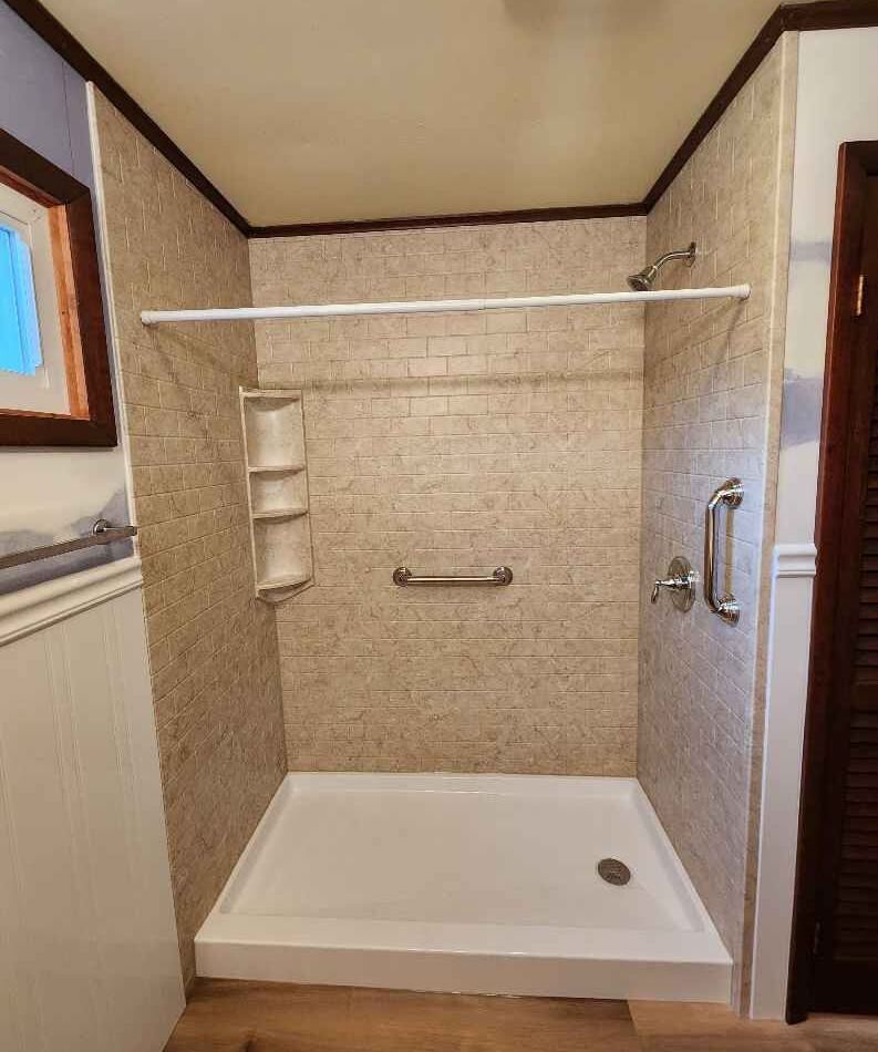 As this week’s featured project we are taking a look at a shower conversion we recently completed for a returning customer in Burlington Flats, NY. Our customer wanted to make their shower safer and more accessible and gave us a call to help! We installed a white shower base with a smooth white acrylic wall…