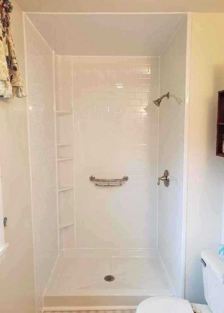 This week we are featuring a walk-in shower we installed for a returning customer in Westmoreland, NY. Our customer decided it was time to update their walk-in shower and we were happy to help make it happen! We installed a white shower base with a patterned white surround and white ceiling panels. A four-shelf caddy,…
