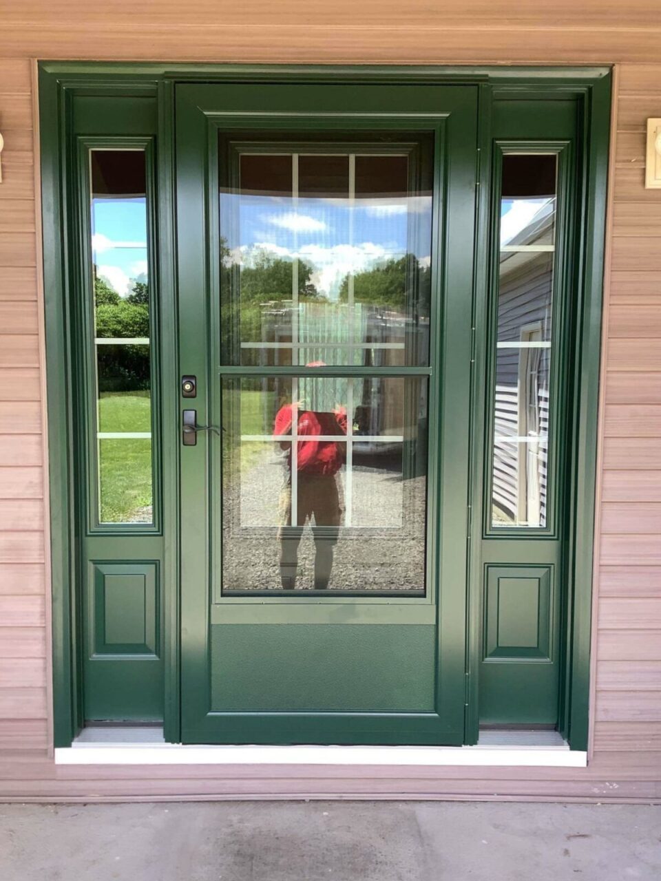As this week’s featured project we are showcasing a beautiful entry and storm door we installed for a returning customer in Ilion, NY. We installed a Provia 2-panel legacy smooth steel door with colonial contoured internal grids and 12″ sidelights. The exterior of the door is painted in the color Forest Green and the interior…