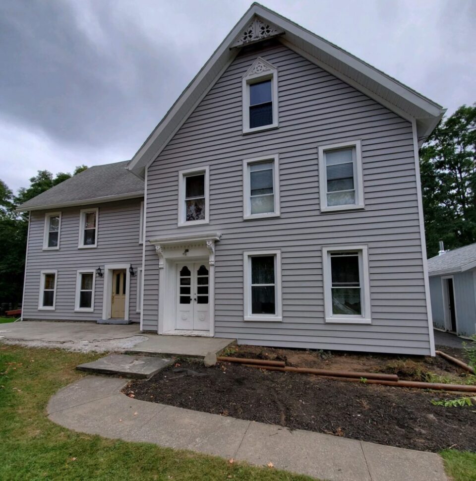 This week our featured project is a sided home for a customer in Stamford, NY. They wanted to add curb appeal to their home and what better way to make a statement than with brand new siding? Additionally they had us replace 3 attic windows with double hungs and add new gutters on their home. Our customers chose Cedarboard Siding in the color sterling grey and gutters in white.