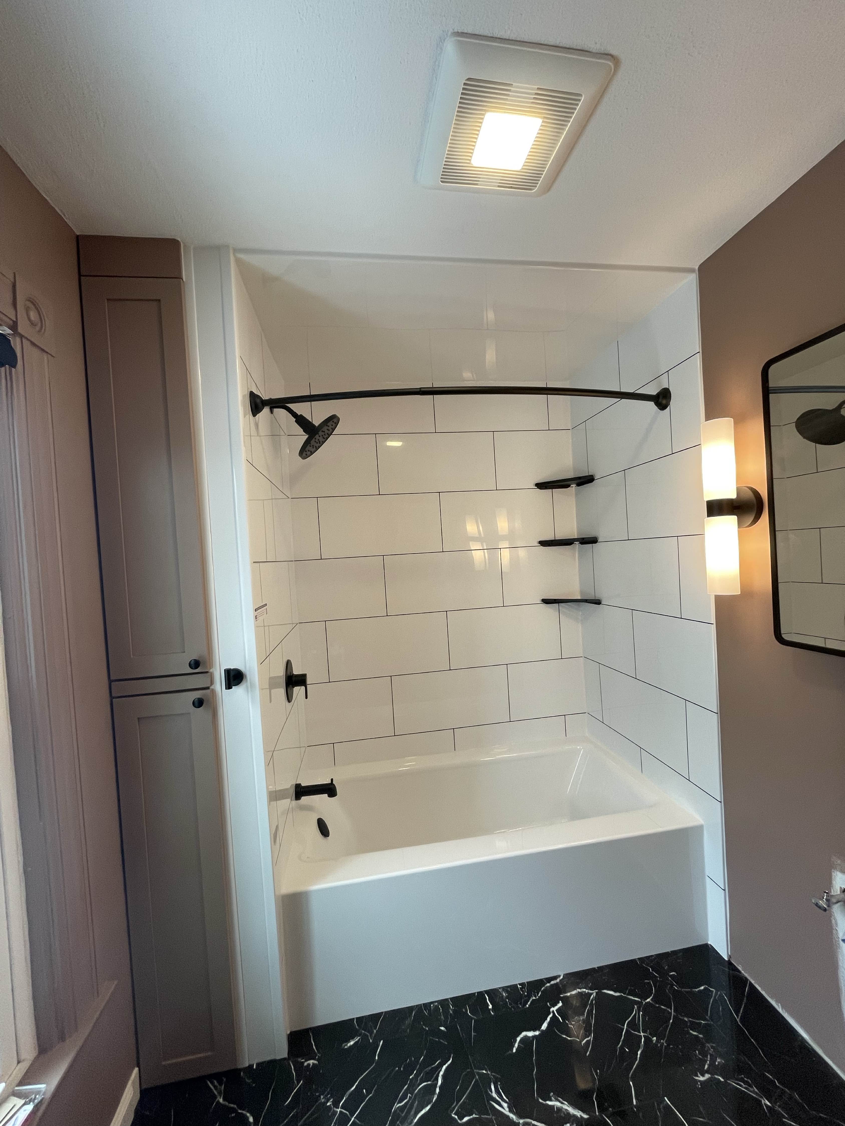 For this week’s featured project we are taking a look at a tub replacement project we completed for a new customer. They reached out to us for a fresh, modern look, and we delivered! We installed a white tub with Laser-Etched Tiles in the pattern Roman Block. To complete the project, we installed three single…