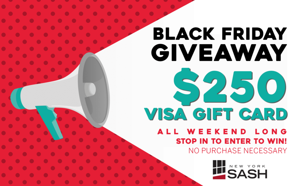WIN BIG FOR BLACK FRIDAY We’re celebrating Black Friday BIG all week long! When you’re out doing your holiday shopping this Wednesday, Friday and Saturday, stop in to New York Sash and enter to win a $250 Visa Gift Card. No purchase necessary and you do not need to be present to win. Plus check…