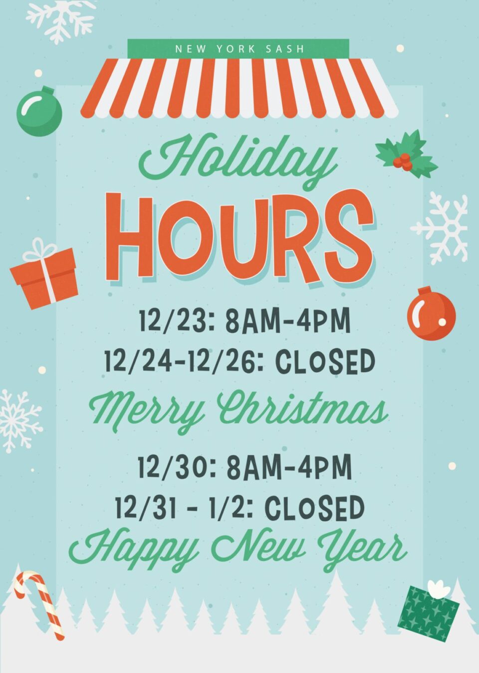 Please note our revised hours for the upcoming holidays. A Merry Christmas and Happy New Year from our family to yours!