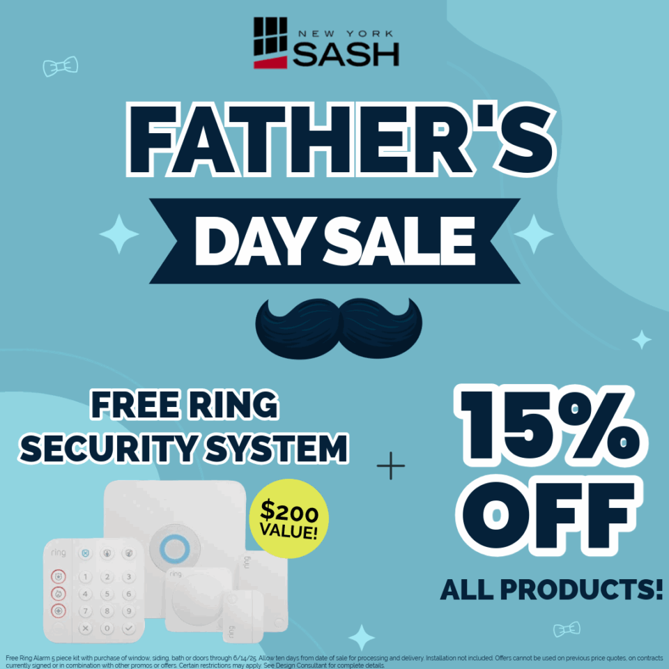 Our company, like many others, was passed down father to son. And we know how important dads are to a happy home! So we’re celebrating Father’s Day, now through Saturday at New York Sash!