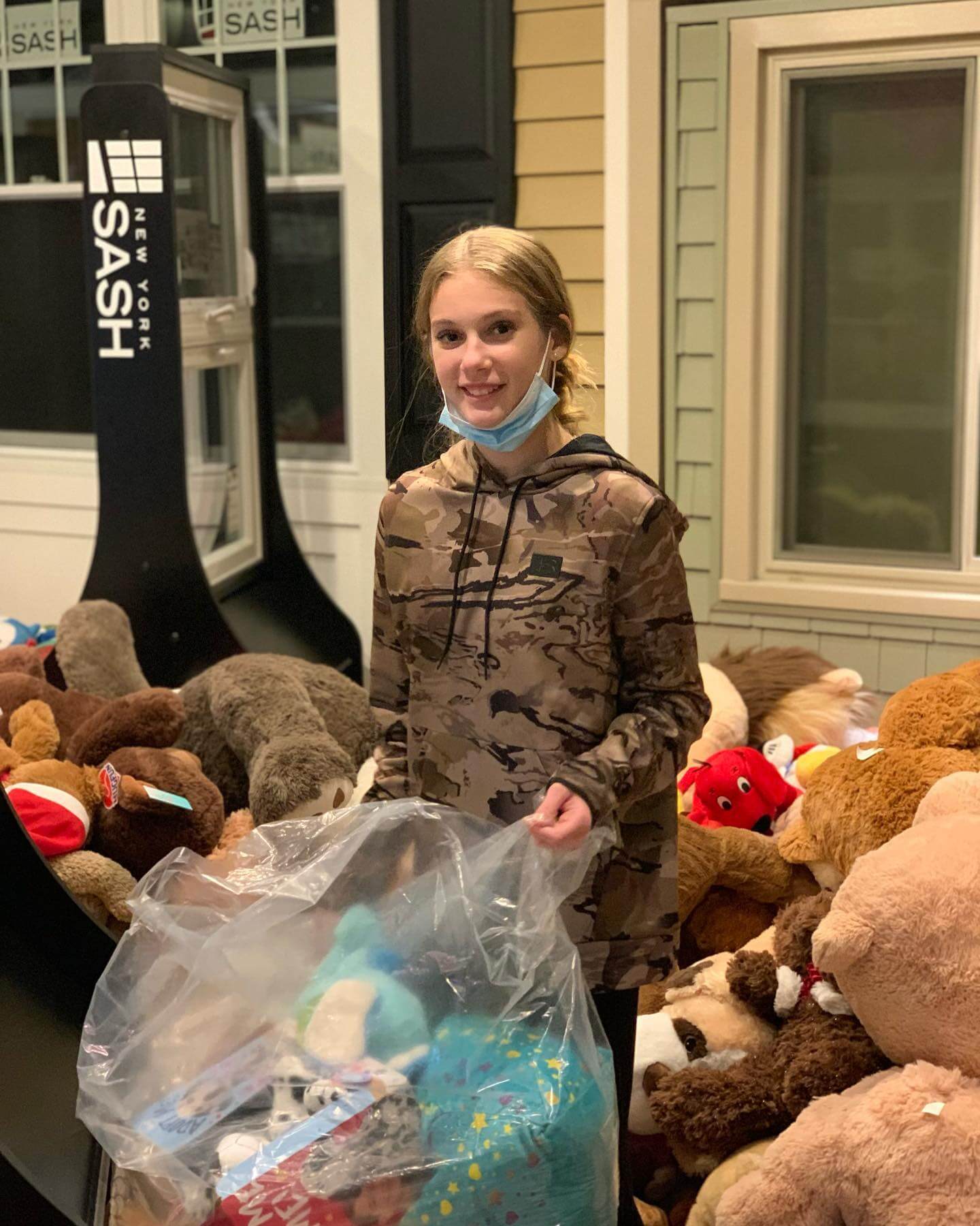 For the past 17 years, the New York Sash Teddy Bear Toss has been a family-favorite holiday event with the Utica College Pioneers Men’s Ice Hockey Team. This year’s sold-out hockey game and toy drive took place December 4th with a 8-0 win over King’s College Monarchs. When the Utica Pioneers scored their first goal, thousands of teddy bears were thrown down onto the ice. New York Sash staff, family and friends collected the bears and filled multiple trucks. What many don’t realize is that is where the work began for New York Sash staff – about a week’s worth.
